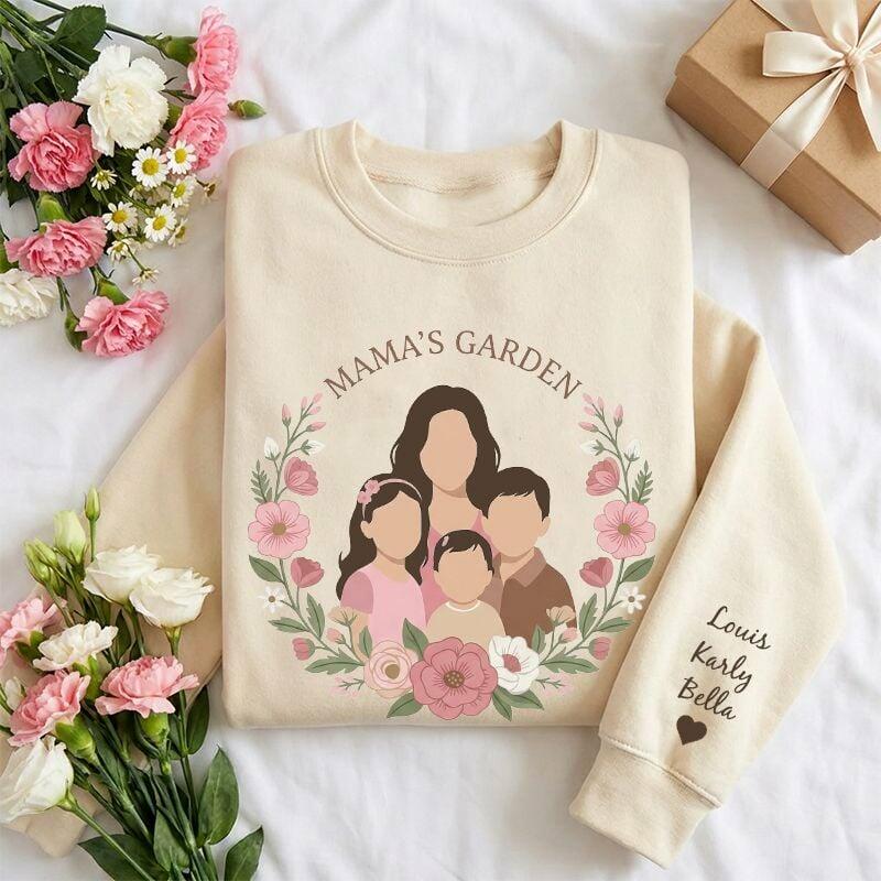 Personalized Sweatshirt Custom Photo and Names Mama's Garden Wreath Design Pretty Gift for Dear Mom