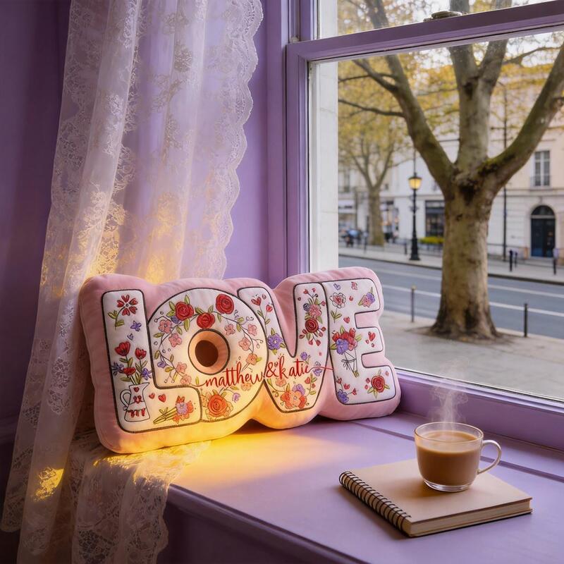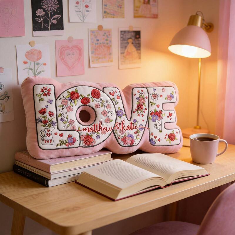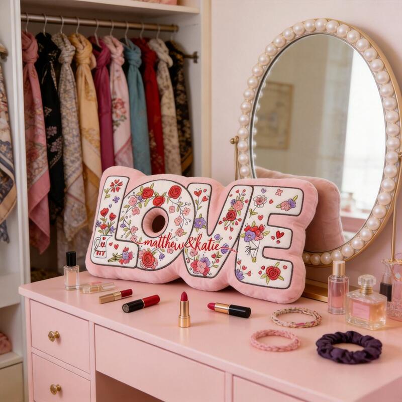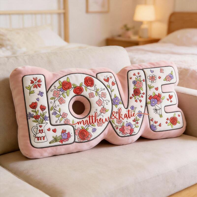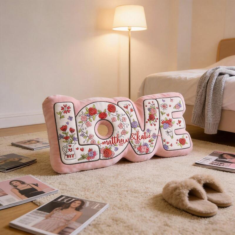 Personalized Throw Pillow with "Love" Floral Design Fabric Decorative Pillow for Valentine's Day