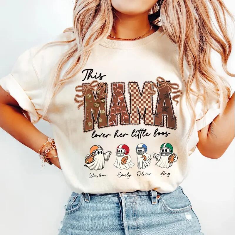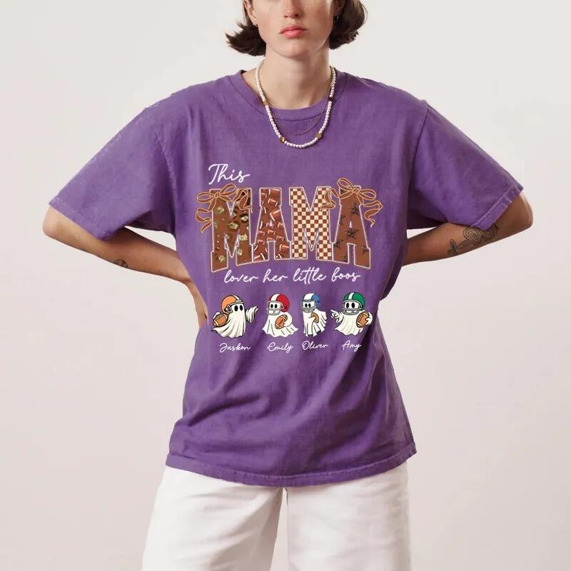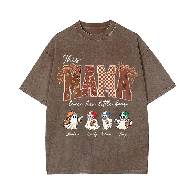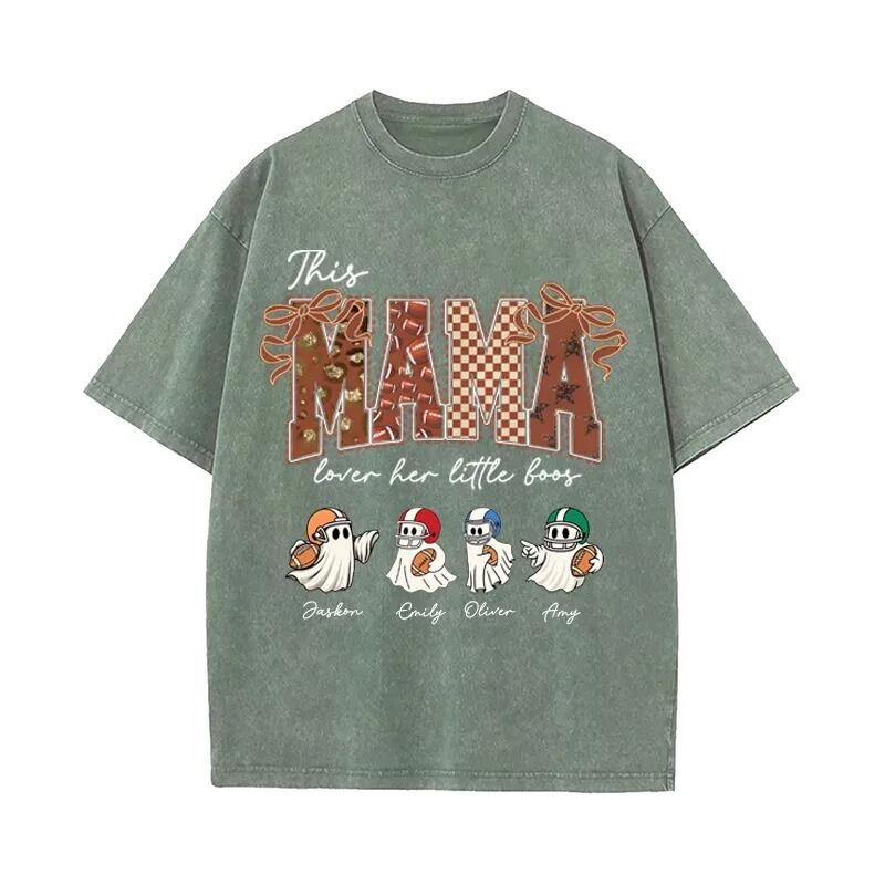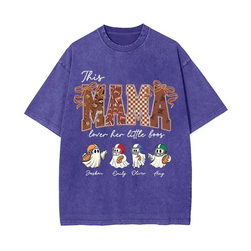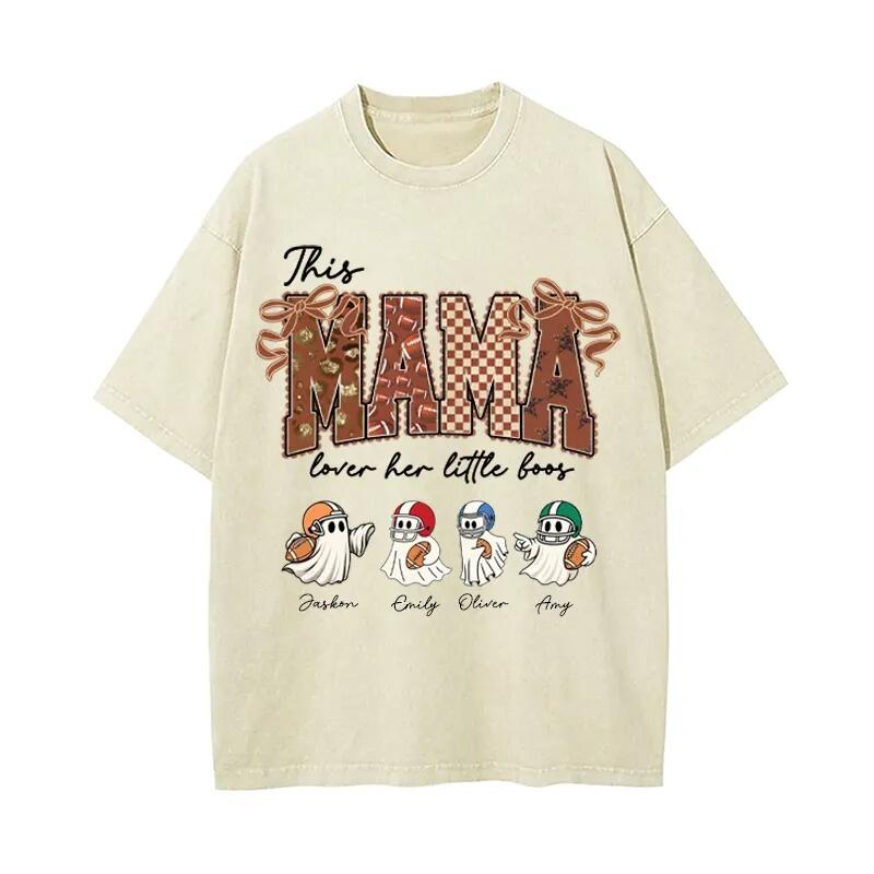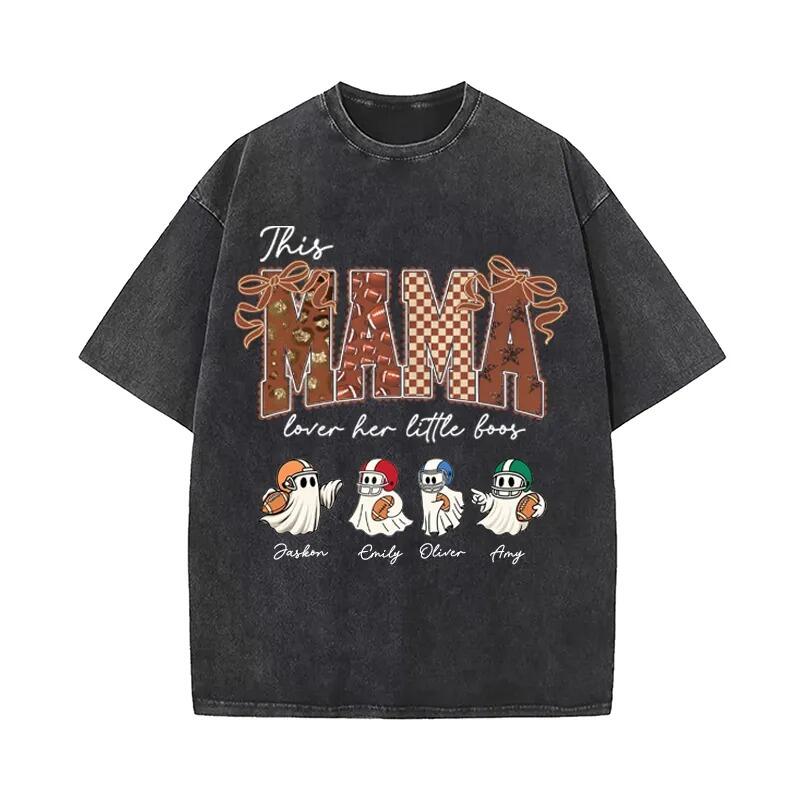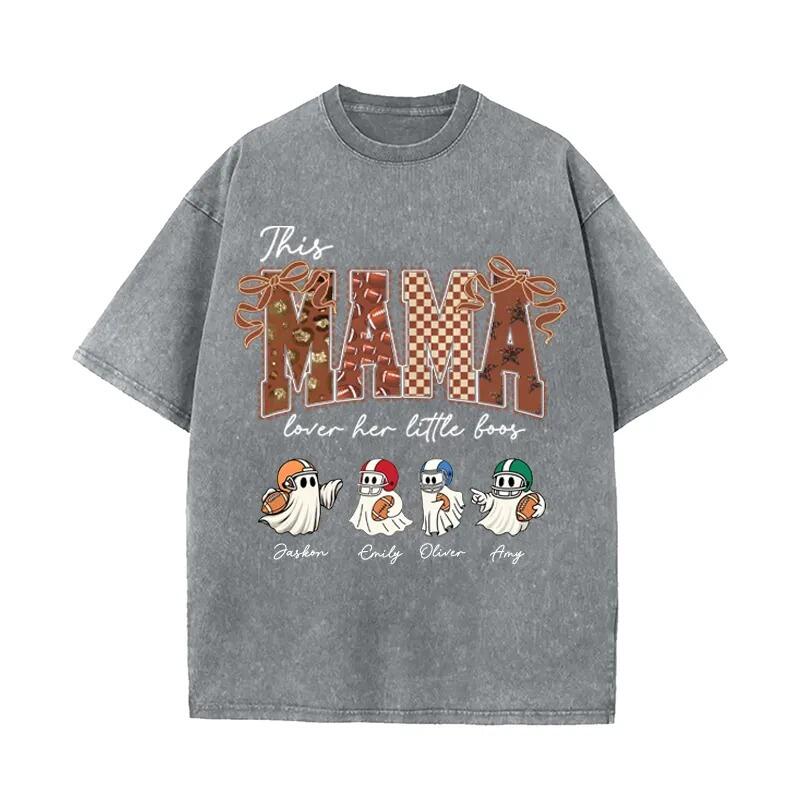 Personalized Washed T-shirt This Mama Loves Her Boos Custom Kids Pattern Cute Gift for Football Mom