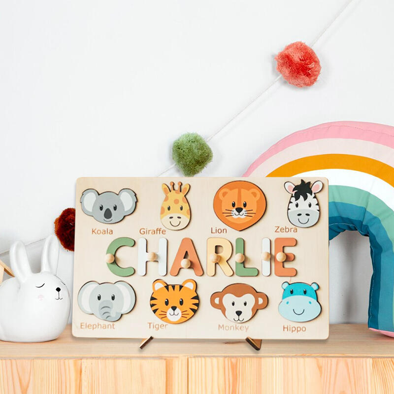 Personalized Wooden Name Puzzle Toy Gift Customized Cute Animal Head Christmas Gift for Kids