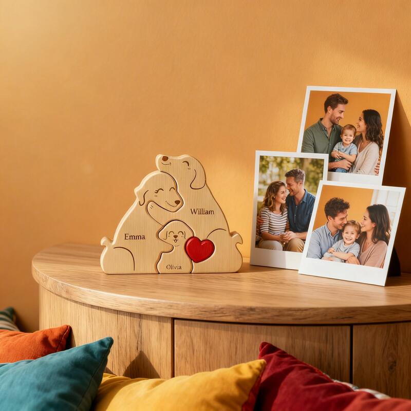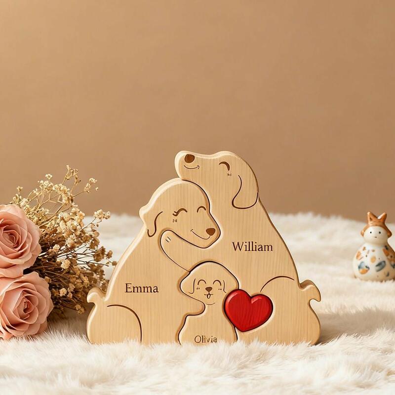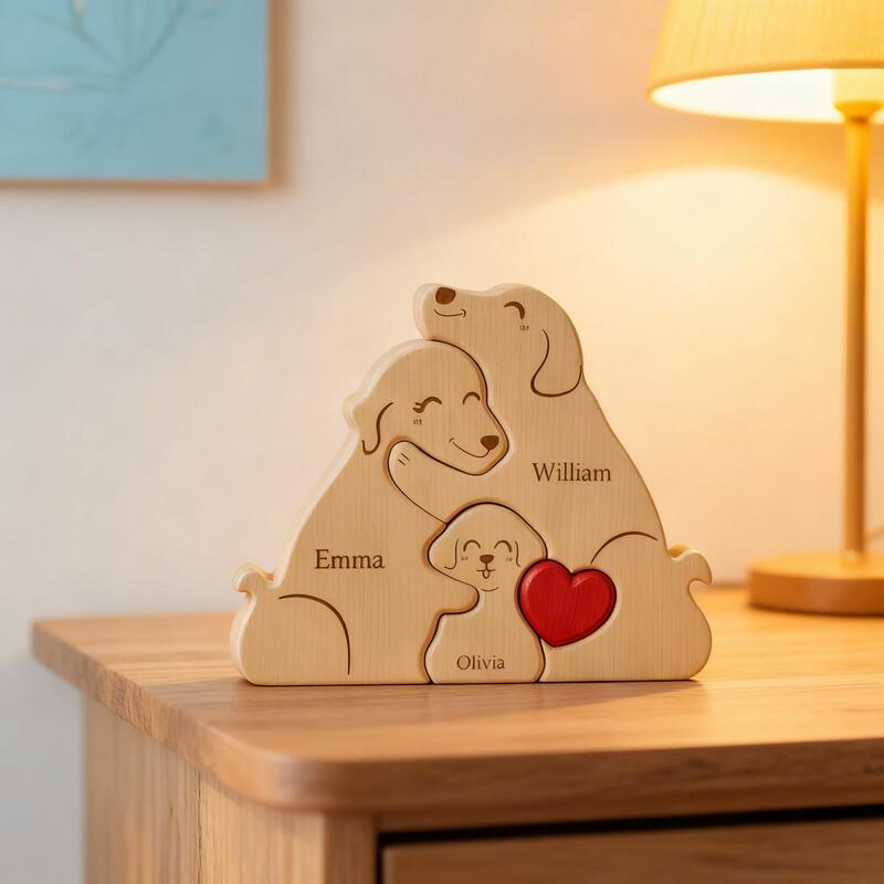 Nothing can compare to the serene and warm familial affection within a family. This personalized wooden puzzle of a family of dogs perfectly captures this bond of love. Each gentle curve and shared sentiment in it embodies this emotion. It is not just a piece of decoration, but a tangible symbol of home. It carries love, laughter, and reunion, making the house a true home. From loving parents to lively puppies, each dog shape is accompanied by a name, telling your unique story, transforming ordinary wood into an extraordinary symbol, representing your eternal family.