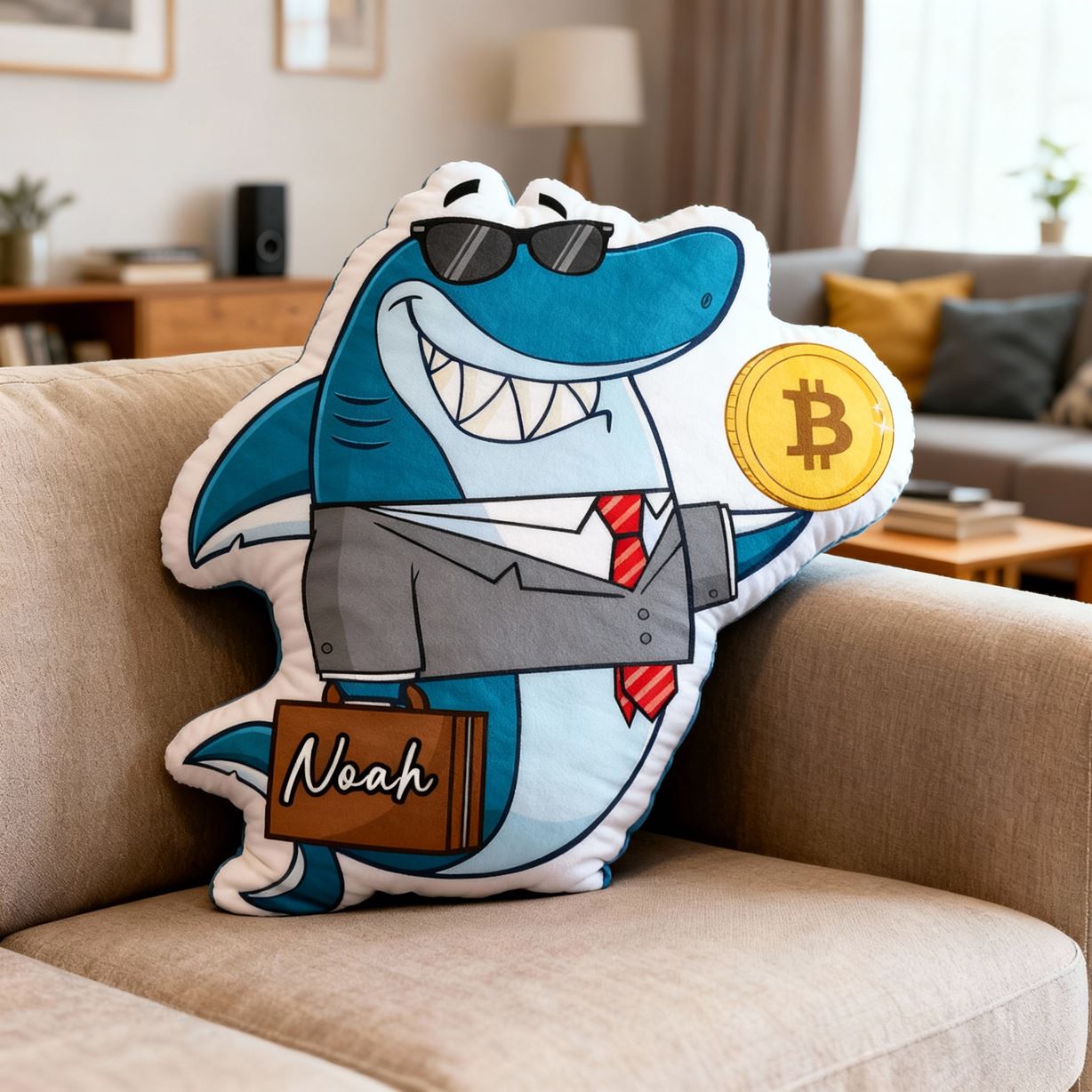 "Shark Boss" Personalized Suit Fish Pillow Fun Print Pillow Birthday Gift for Dad
