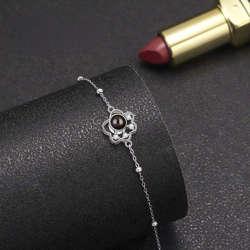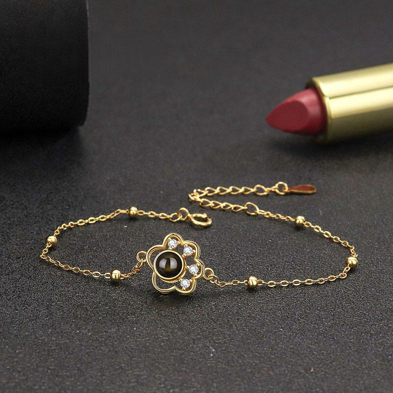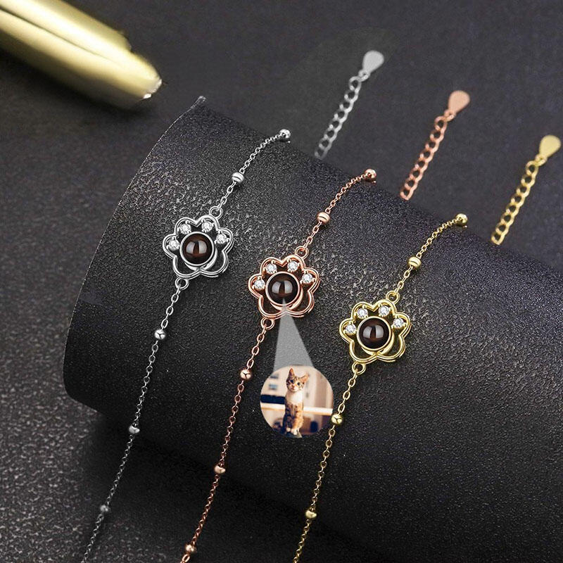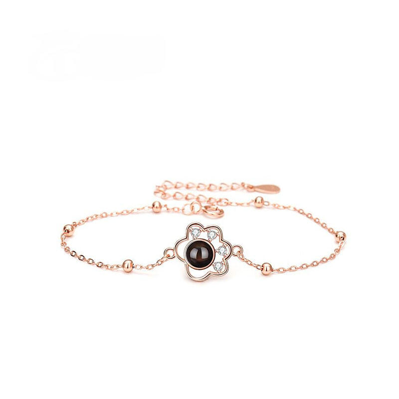 Sterling Silver Personalized Picture Projection Bracelet with Hollow Animal Footprint Cute Present for Pet Lover